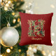 Custom Ornate Monogram H Christmas Red Gold Throw Pillow
