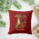 Custom Ornate Monogram I Christmas Red Gold Throw Pillow