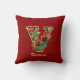 Custom Ornate Monogram V Christmas Red Gold Throw Pillow