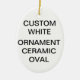 Custom printed personalized OVAL WHITE PORCELAIN CHRISTMAS TREE ORNAMENT DECORATION Blank Template - 3.32" high x 2.37" wide. Design, create, make your own. Your photo, image, text, logo, graphics in full color print on both sides of the ornament. UV-resistant, waterproof.