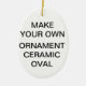 Custom printed personalized OVAL WHITE PORCELAIN CHRISTMAS TREE ORNAMENT DECORATION Blank Template - 3.32" high x 2.37" wide. Design, create, make your own. Your photo, image, text, logo, graphics in full color print on both sides of the ornament. UV-resistant, waterproof.