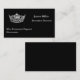 This custom business card template is shown in a black color with a sample text in white and has a pageant crown print. Customize and change the sample information to yours.
