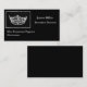 This custom business card template is shown in a black color with a sample text in white and has a pageant crown print. Customize and change the sample information to yours.