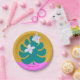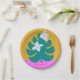 Custom cute palm name birthday modern paper party plate .Personalized tropical aloha bright colors modern paper plates for birthdays celebration, birthday parties, family events. barbecue summer party. . Beautiful vibrant tropical exotic paper plate with big green palm leaf. Paper plates for women birthdays, mothers birthdays, wifes, friends, travel lovers birthdays.