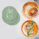Custom Palm Tree Monogram Save the Date Logo Round Paper Coaster