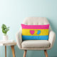 Throw pillow with pansexuality pride flag with pink, yellow and blue stripes, striped pattern with hearts design