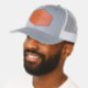 Custom Leather Patch Hat, Sytle: Adult Retro Trucker Cap, Color: Heather / Black, Shape: Circle