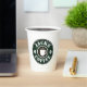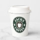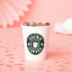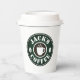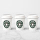 Custom paper coffee cups with lid party supplies. Personalize with your own barista name, company slogan or other text. Custom colors. Great for Birthday, BBQ, party, wedding, office, and more. Double sided print. Disposable party supplies with or without lid. Vintage coffee bean logo with hot cup silhouette. Also great for business owner, shop, store, cafe, bar, event, festival, outdoor market etc. Serve your own unique latte or espresso.