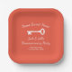 Custom paper plates for housewarming BBQ party. Elegant design with old vintage skeleton key. Great for celebrations with friends and family. Add your own personalized text to celebrate your new address. Perfect for pastry treats, BBQ or dinner at the new house. Custom color paper party supplies. Square and round options.
