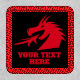Custom patch with red dragon head logo. Personalize with your own colors, logo, quote or name. Fantasy creature with horn spitting fire flames.