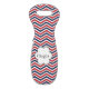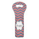 Patriotic red, white, and navy blue chevron striped wine tote with a white edged with black flower that you can customize with a name on both front and back!