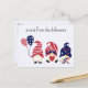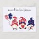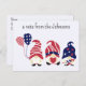 Cute red white blue gnomes holding stars and stripes balloons decorate the front of the postcard with "a note from ...." text at top. Both sides have a subtle 'ghost white' background. Choose semi-gloss or matte paper. A set of these postcards makes an awesome year-round gift for that patriotic friend or family. Easily personalize front and back using the Template provided. Made and printed in the USA, size is 4.25" x 5.6". Read the reviews! See "About This Product" at side for more information.