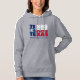 Patriotic Custom TEXAS FLAG hoodie showing TEXAS TEXAS TEXAS designed in the flag of Texas. Underneath, there is CUSTOMIZABLE TEXT that reads WHERE FRIENDSHIP MATTERS, which you can personalize by adding your name (or team name) or creating your own text. The state motto of Texas is Friendship, and the Spanish word, 'tejas', means 'friends', from which the name Texas is said to derive. This stylish Texas flag hoodie would make a great gift for Texan friends and anyone who loves the American 'Lone Star State', especially at Christmas, birthdays, anniversaries, and for Texas Heritage Month. Choose from a wide selection of Texas-themed cards, invitations, party supplies, clothing, home decor and gifts, designed by Berean Designs.