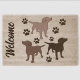 Custom personalised coir door mat with dogs and paw prints silhouette design. Great gift idea for dog lovers.