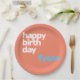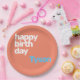 Make your child’s birthday extra special with this personalized “Happy Birthday” paper plate, featuring a bright and colorful minimalist design in blue, white, orange, and peach. This modern, simple plate lets you add your child’s name for a unique personal touch that stands out at any kids’ party.