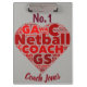 No.1 netball coach custom personalized clipboard with netball positions word art design. Netball themed gift idea for netball coach