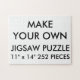 Custom printed personalized 252 PIECE JIGSAW PUZZLE Blank Template - 11" x 14" (252 pieces). Design, create, make your own. Vivid full color print of your photo or design. Includes beautiful gift box with puzzle image also printed on the lid. Sturdy cardboard stock, mounted on chipboard, easy wipe-clean surface. Lots of alternative size puzzles available. Best for a kids' or grandparents' birthday or Christmas gifts and for Jigsaw Puzzle fanatics. Warning: Not suitable for children under 3.