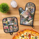 Custom Personalized 17 Photo Collage Gold Monogram Oven Mitt & Pot Holder Set