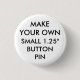 Custom printed personalized SMALL 1.125" ROUND BUTTON PIN BADGE Blank Template (1.25" - 6" available). Design, create, make your own. Vivid full color print of your photo, pattern, image, text. Scratch and UV-resistant Mylar protective coating. Available in 5 circular sizes: 1.25", 2.25", 3", 4", 6" diameter round buttons and a 2" square button. Made in U.S.A. Best for political and social quotes and statements, funny pictures for kids, expressing your individuality, and for birthday and Christmas gifts.