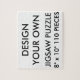 Custom printed personalized SMALL 110 PIECE JIGSAW PUZZLE Blank Template - 8" x 10" (110 pieces). Design, create, make your own. Vivid full color print of your photo or design. Includes beautiful gift box with puzzle image also printed on the lid. Sturdy cardboard stock, mounted on chipboard, easy wipe-clean surface. Lots of alternative size puzzles available. Best for a kids' or grandparents' birthday or Christmas gifts and for Jigsaw Puzzle fanatics. Warning: Not suitable for children under 3.