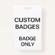 Custom printed personalized 3.38" x 2.13" VERTICAL BADGE Blank Template. Design, create, make your own. Your photo, image, text, logo, graphics in full color edge-to-edge print on the front and the back, horizontal or vertical. Made of PVC plastic, durable, won't fade or tear. Retractable, Metal Clip, Lanyard Necklace, or Just Badge.