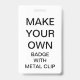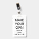 Custom printed personalized 2.13" x 3.38" PORTRAIT BADGE WITH METAL CLIP Blank Template. Design, create, make your own. Your photo, image, text, logo, graphics in full color edge-to-edge print on the front and the back, horizontal or vertical. Made of PVC plastic, durable, won't fade or tear. Retractable, Metal Clip, Lanyard Necklace, or Just Badge. Best for office and business identity use, expos, exhibitions, conferences and corporate events.
