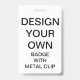 Custom Badge, Orientation: Vertical, Attachment: Metal Clip, Size: 2.13" x 3.38"
