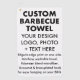 Design your own custom personalized Barbecue Towel, 16" x 24". Create your own personalised 80% woven polyester and 20% polyamide blend microfiber bar towel, featuring brass-plated hook and grommet for quick hanging on your barbecue or bar. Make your own fully customizable machine washable garden entertaining towel by personalizing the top of the BBQ towel with your photo, image, design, logo, plus add text.