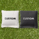 Make, design, create your own custom BLACK Cornhole Bag Toss (two sets of four throw bags) - individually personalize each set of four corn hole bags and choose from 17 throw bag colors! FEATURED BAG COLORS - FIRST 4 BAGS: White. SECOND 4 BAGS: Black. Personalized 'bean bags', for wedding fun, birthday party, Christmas gifts, and promotional sports business, school, and college recreation. For the best browsing and viewing experience, visit https://customsportsgift.com/custom-cornhole-bags/.