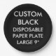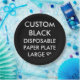 Custom printed personalized LARGE 9" BLACK DISPOSABLE PAPER PLATE Blank Template. Design, create, make your own. FDA approved for food contact and safety. Custom paper plates are best for birthday party. Best for Christmas, kids birthday, and wedding use.