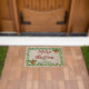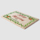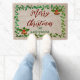 Custom personalised coir welcome door mat with name and Christmas inspired holly design. Great customisable new home gift idea for friends and family at Christmas.