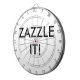 Custom printed personalized REGULATION SIZE DARTBOARD Blank Template - 18" diameter, 1" high. Design, create, make your own. Regulation sized dart board with aluminum frame and hanging hook, comes with 6 brass darts (3 American flag dart flights and 3 UK dart flights). Vibrant, full color print of your photo, pattern, design, text.