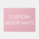 Custom printed personalized SMALL DOOR MAT (PINK background example) Blank Template - 18" wide x 24" long. Design, create, make your own. High quality full color sublimation print that won't fade. Smooth fleece (1/8") with bound white edge and sturdy latex rubber action backing for a non-slip grip, approved for indoor and covered-outdoor areas.
