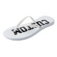 Custom printed personalized ADULT SIZE FLIP FLOPS (Unisex - men's and women's) with SLIM WHITE Straps & WHITE Footbed Undersole Blank Template. Design, create, make your own. Your photo, image, text in full color edge-to-edge print on the entire upper sole of the flip flops. Thong style, easy slip-on flip flops, similar to Havaianas®. 100% rubber makes sandals heavyweight and durable, and cushioned footbed with textured rice pattern provides all day comfort. Available with Black or White footbeds, 4 strap colors, and a choice of slim straps, wide straps, or kids' style all in the usual choice of sizes. Made in Brazil. Printed in the USA.