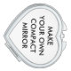 Custom printed personalized HEART SHAPED COMPACT MIRROR Blank Template - 2.6" long x 2.8" wide x 0.3" thick. Design, create, make your own. Your photo, image, text vibrant full color print on metal insert on front. Compact mirrors are all metal construction with inside mirrors on both sides. Available in 4 shapes: Round, Square, Oval & Heart shape. Best for birthday and Christmas gifts for women and teenage girls. NOTE: See WARNING on product purchase page regarding chemicals used in production - not recommended for under 13's.