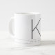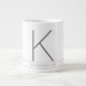 Great big huge giant oversized mug with personalized white and gray monogram initial printed on ceramic is chic and stylish for the minimalist who loves a little flair, but not too much - perfect for a minimal city loft kitchen, and professional-looking for the office. Add a name or personal mantra or inspiration word in the stripe, and add your monogram initial in the modern and clean font. Change the background color to your favorite sport, school, or team color by clicking 'customize further'.