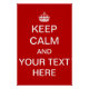 Add your funny saying or personalized custom text to this "Keep Calm and Carry On" perfect poster! Create your own keep calm sign. Vibrant red background with white block text and crown logo element makes a bold statement. Red and white design with crown teaches you not to panic in times of chaos. Funny, humorous and cute design makes a great gift for a business woman, homemaker or just a vintage art and decor lover.