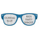 Custom printed personalized BLUE KIDS' SIZE RETRO STYLE PARTY SHADES Blank Template - 5" wide x 5.5" long x 1.75" high; fits kids ages 4-8. Design, create, make your own. Full color print of your photo, image, text on scratch resistant, waterproof, pinhole vinyl 100% UV protected clear lens. Independently customize each lens of both together. Includes microfiber pouch for storage and cleaning. Multiple purchase and save. 3 Party Shade styles (kids, retro & Aviator) and 9 color options. Best for a Bachelor or Bachelorette party, fancy dress, kids parties, a birthday party, Spring break and Ibiza weekends, the office party and general fun. Extensively tested, fully Consumer Product Safety Improvement Act (CPSIA) compliant - not recommended for sunwear.