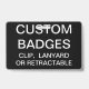 Custom Badge, Orientation: Horizontal, Attachment: Metal Clip, Size: 2.13" x 3.38"