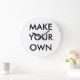 Custom printed personalized LARGE ROUND WALL CLOCK with BLACK HANDS Blank Template - 10.75" diameter. Design, create, make your own. Vivid print of photo, artwork, image, text. Grade-A acrylic clocks - one AA battery required (not included).
