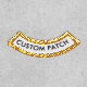 Custom personalized polyester LOWER ROCKER PATCH template blank, with GOLD MYLAR border stitching (choose from 13 colors or laser-cut edge).