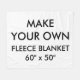 Custom printed personalized MEDIUM FLEECE BLANKET Blank Template - 60" x 50". Design, create, make your own. Vibrant full color edge-to-edge sublimation print, back color is displayed as off-white. 100% soft and cozy polyester fleece, sturdy double edge stitching, machine washable.