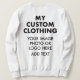 Custom personalized clothing. Design, create, make your own custom clothes from a template or blank. Personalised custom printed clothing, including all over print clothes. The perfect customizable, personalised gift for Christmas, a birthday, kids' party, baby shower, bridal shower, wedding, retirement, anniversary or other special occasion. Customize with a photo, logo or design, and add text. Make promotional goods for a corporate event or general business use. Add your logo and branding for use in retail, hospitality, or customer facing staff clothes.