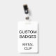 Custom Badge, Orientation: Horizontal, Attachment: Metal Clip, Size: 2.13" x 3.38"