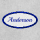 Custom Personalized Name Blue Oval Polyester Iron On Patch. Personalize this custom design with your own name or text.