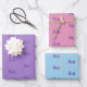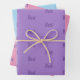 This is a set of three custom name wrapping paper sheets. There are three pastel color wrapping paper sheets with the name Best on them in purple text. You can change the name by clicking the Personalize button. There is a lavender, pink and blue wrapping paper sheet in the set with the name Best on the sheets in purple text. There is a grid guideline on the back of each sheet to make folding easier.