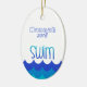 Light blue, dark blue and teal custom, personalized ornament for the swimmer.
