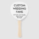Custom printed personalized 5.75" PADDLE WHITE WEDDING FANS (sets of 10) Blank Template. Design, create, make your own. Your wedding photo, image, message, text, bride and groom names, logo, graphics, in full color print individually designed on both sides of the fan. 5.75" diameter. Available in white and ecru cardstock (customize to any color). Simple assembly required - wood handles and 4 glue dots per fan included (available pre-assembled for an upcharge). Available Round, Heart shaped, Paddle or Rectangle.