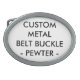 Custom printed personalized OVAL PEWTER BELT BUCKLE Blank Template - 3.75" x 2.75". Design, create, make your own. Your photo, image, text in full color print on the front panel of the buckle. Made in the USA. Available in Rectangle or Oval shape. Best for birthday and Christmas gifts for men.