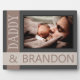 Unique, classic, cute and decorative photo plaque with a trendy gray background, taupe brown and ivory beige banners. With the option to customize or personalize with name, text and photo of your choice. This photo display makes a fun Father's or Mother's Day or birthday gift, or excellent keepsake for a new dad or mom!